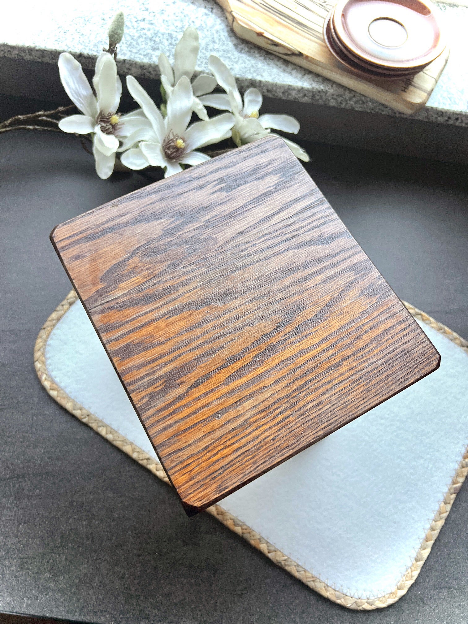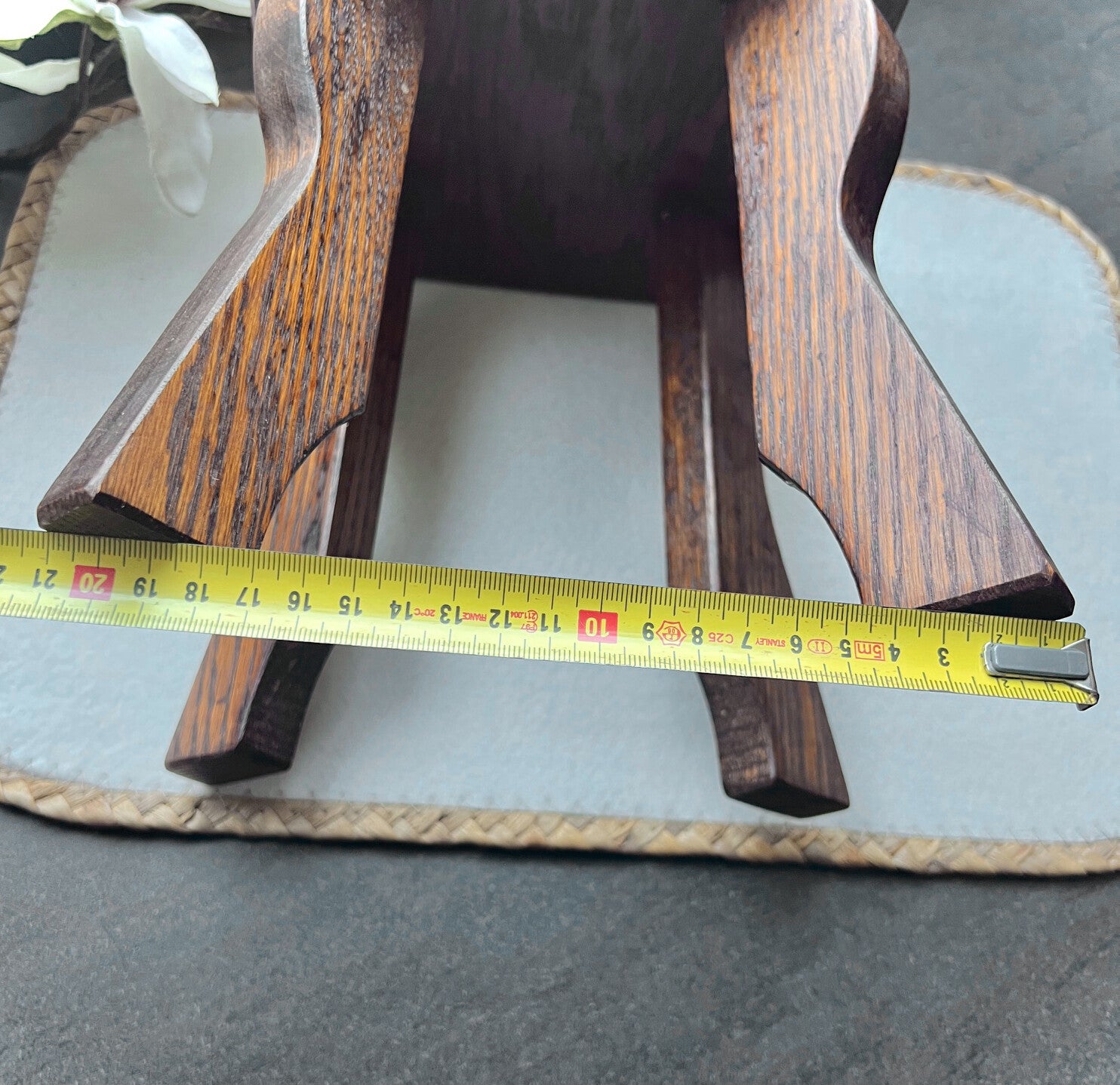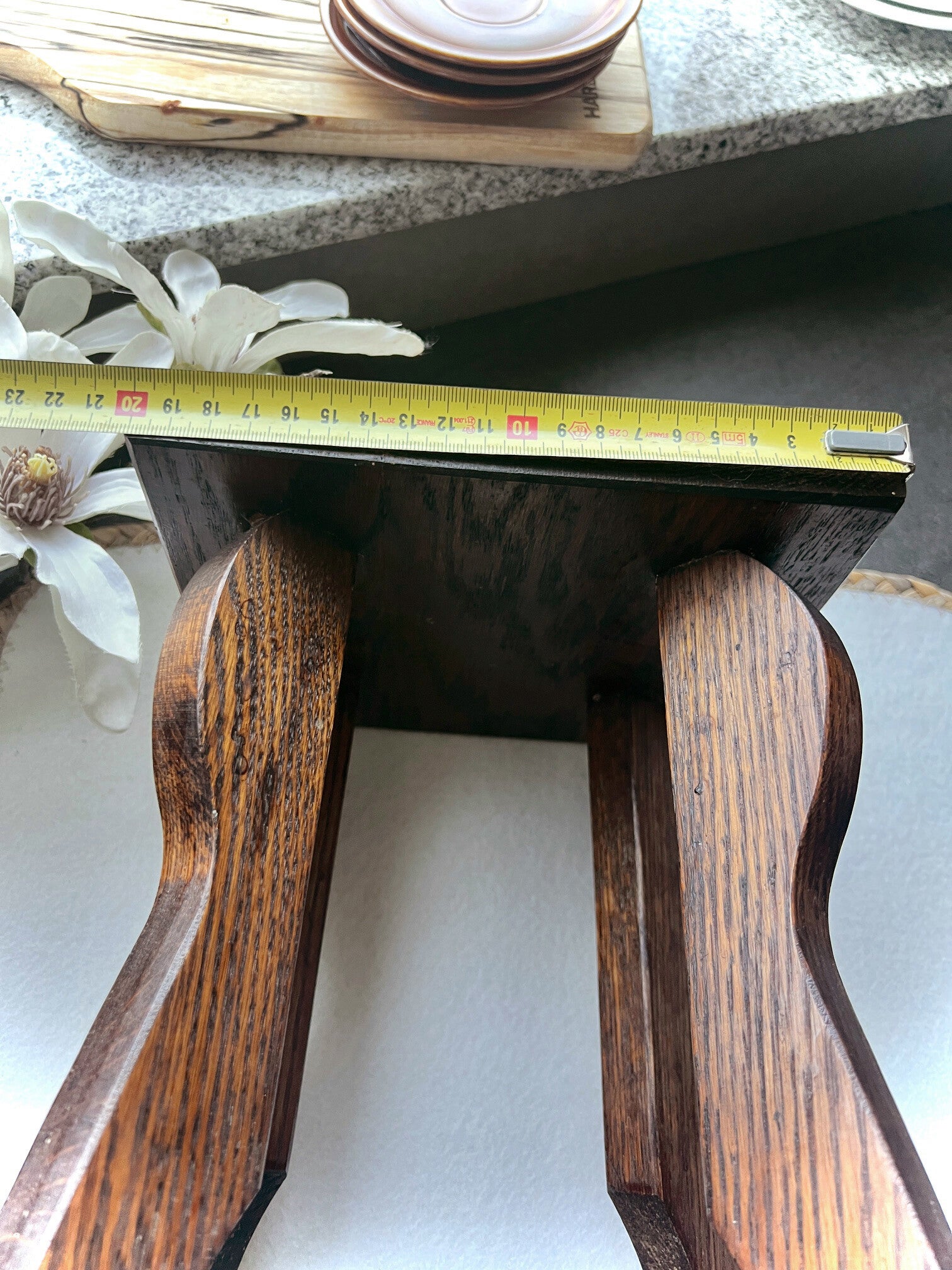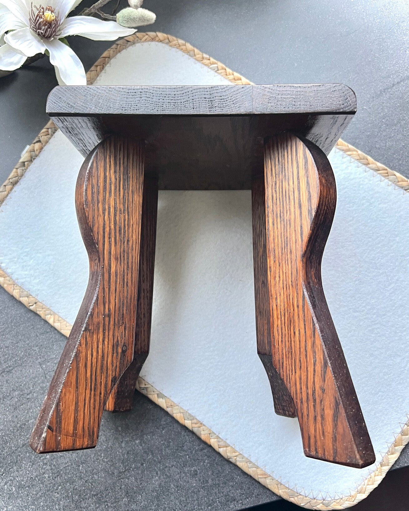Prachtig, stevig houten krukje met een warme patina. Door zijn kleine formaat is hij perfect als plantentafeltje, bijzetkrukje of decoratief accent in een landelijk of wabi-sabi interieur.