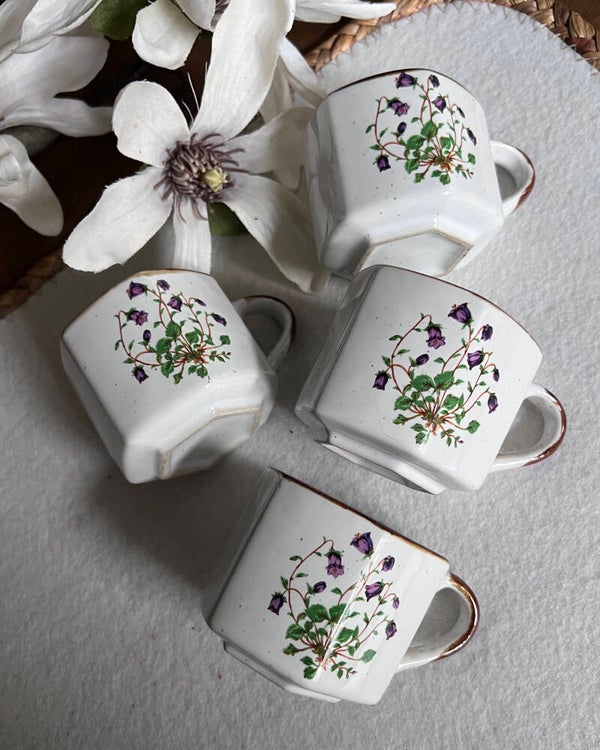 Jaren '70 mokken met botanische afbeelding . Geen merkteken , mooie zeshoekig design (hexagon)